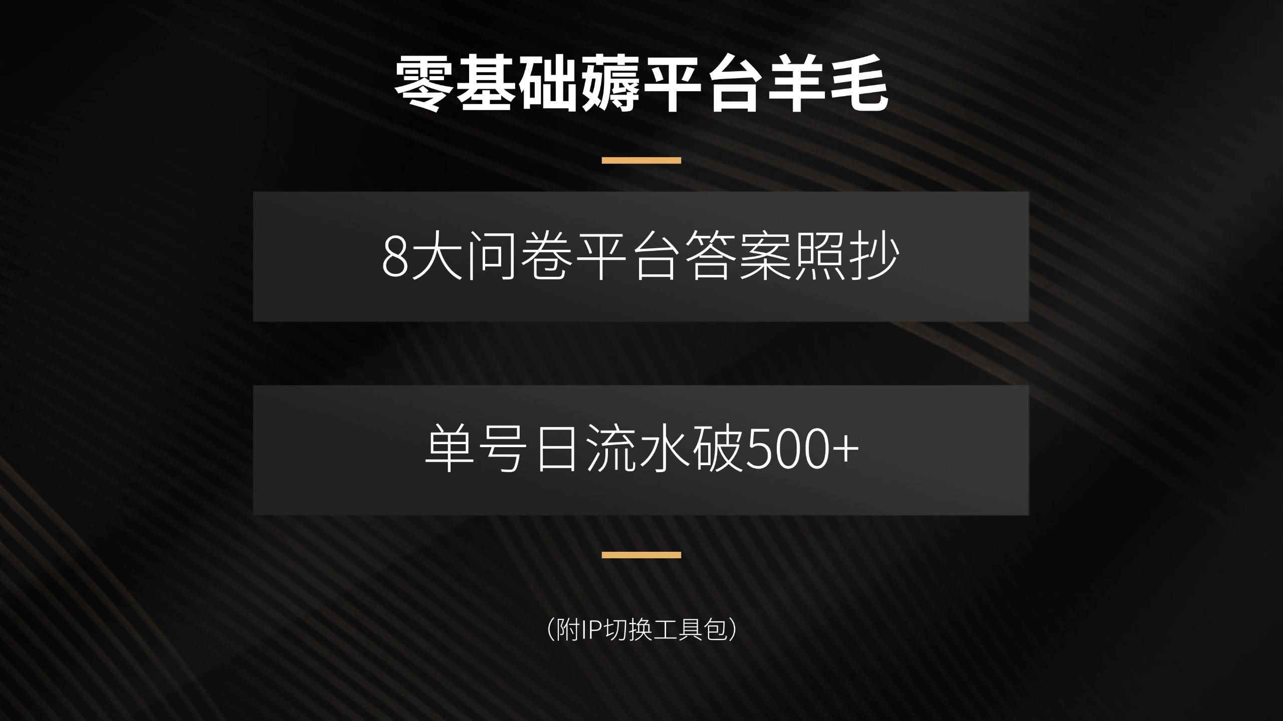 (15860期)零基础薅平台羊毛,8大问卷平台答案照抄,单号日流水破500+(附IP切换… |