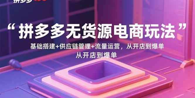 拼多多无货源电商全流程运营课程?,聚焦代发供应链管理与店铺精细化运营。课程涵盖?基础搭建?(店铺注册、运费设置)、?供应链管理?(聚水潭绑定、供应商选品)和?流量运营?(权重解析、活动策划)三大模块,通过26节实操课帮助学员掌握从开店到爆单的全链路技能,实现零库存电商的稳定盈利。