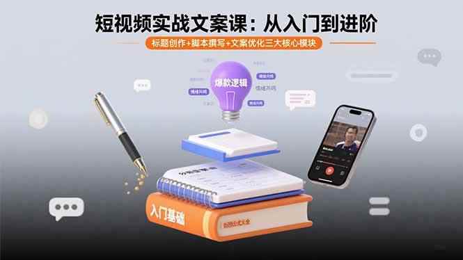 《短视频深度文案课》是一门专为新媒体从业者设计的实战文案课程,聚焦短视频标题创作、脚本撰写及文案优化三大核心模块。课程涵盖14节内容,包括短/长脚本创作方法(如对比法、权威法、视觉法等)、标题写作技巧(8大欲望情绪标题、万能文案公式)以及文案修改策略。特色模块如“文案抄袭改写方法”和“长视频篇脚本升级”,强调可落地的练习与变现能力提升,适合从入门到进阶的文案创作者。