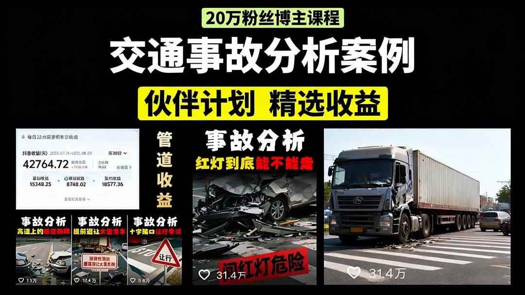 [短视频运营] (15995期)交通事故分析案例短视频,剪辑技巧+文案模板+配音教学+快速起号 月收益2w+ |